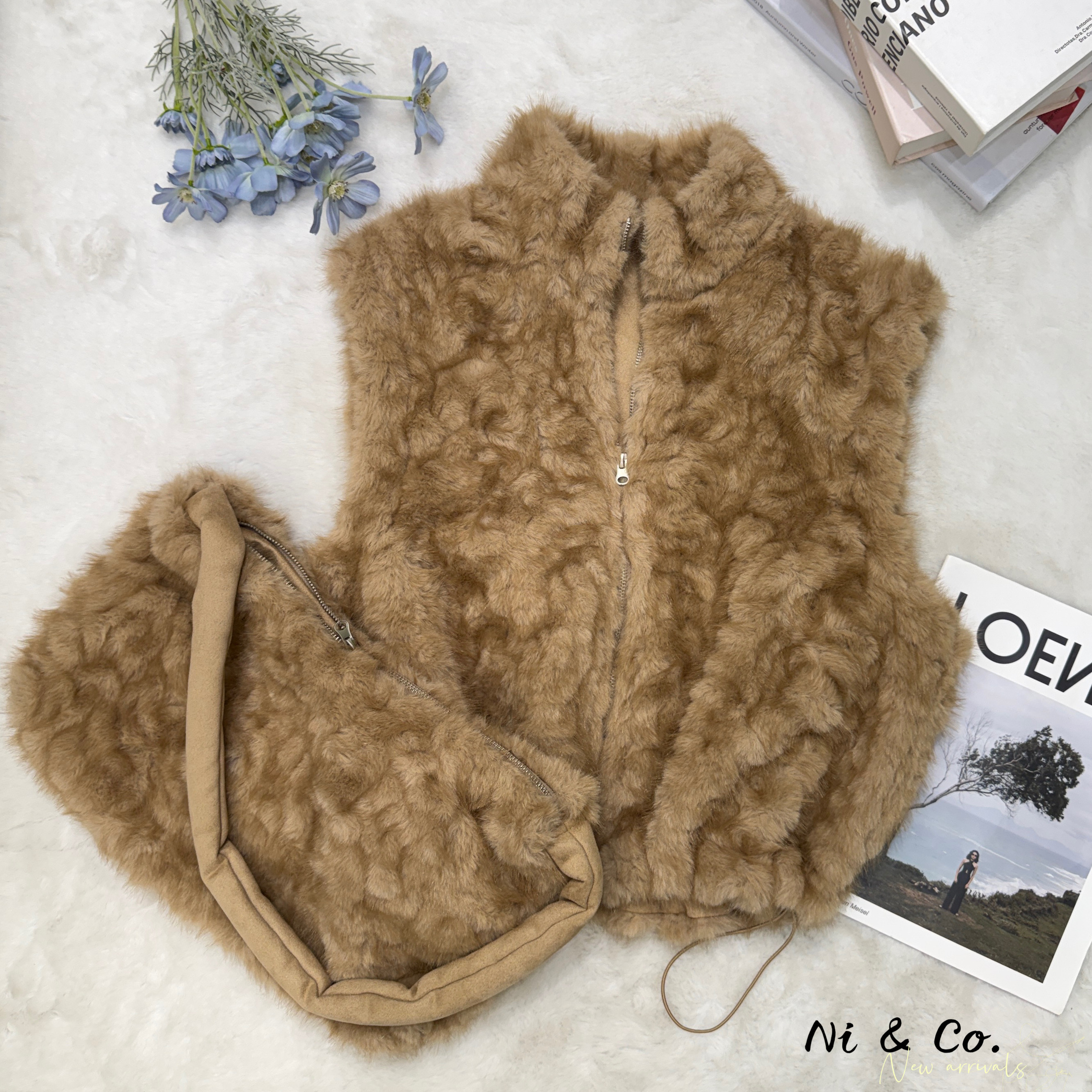 #3646 QQ毛棉花糖背心+大包包