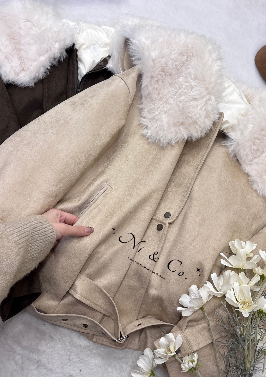 #3589 韓國原單外流/大翻毛領蜜桃絨外套(90%鴨絨)