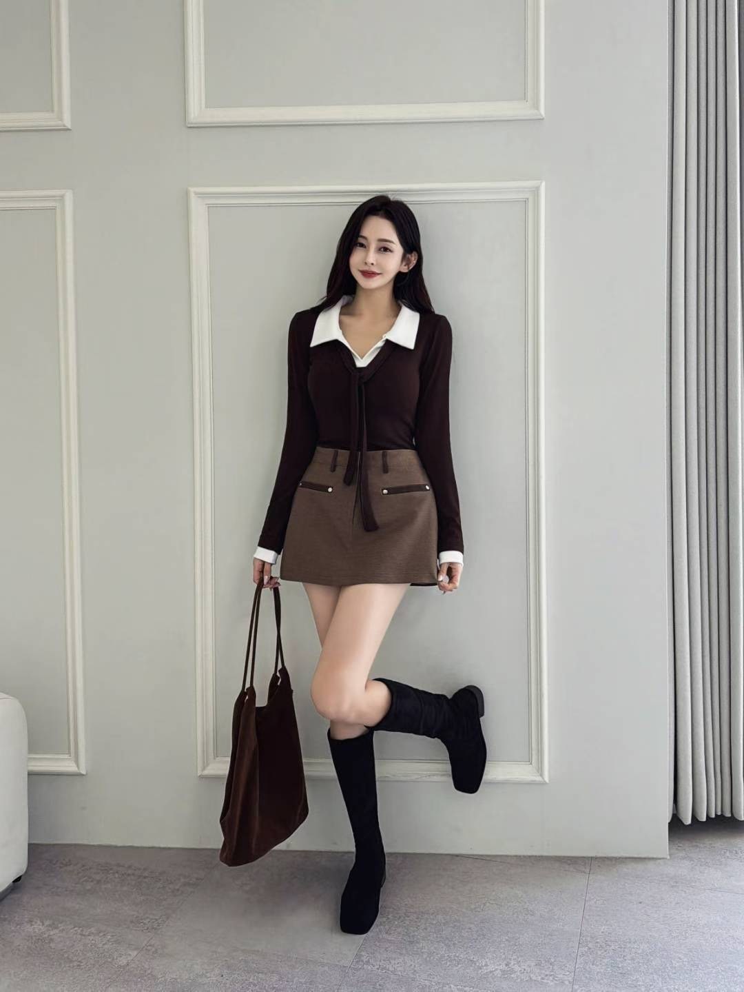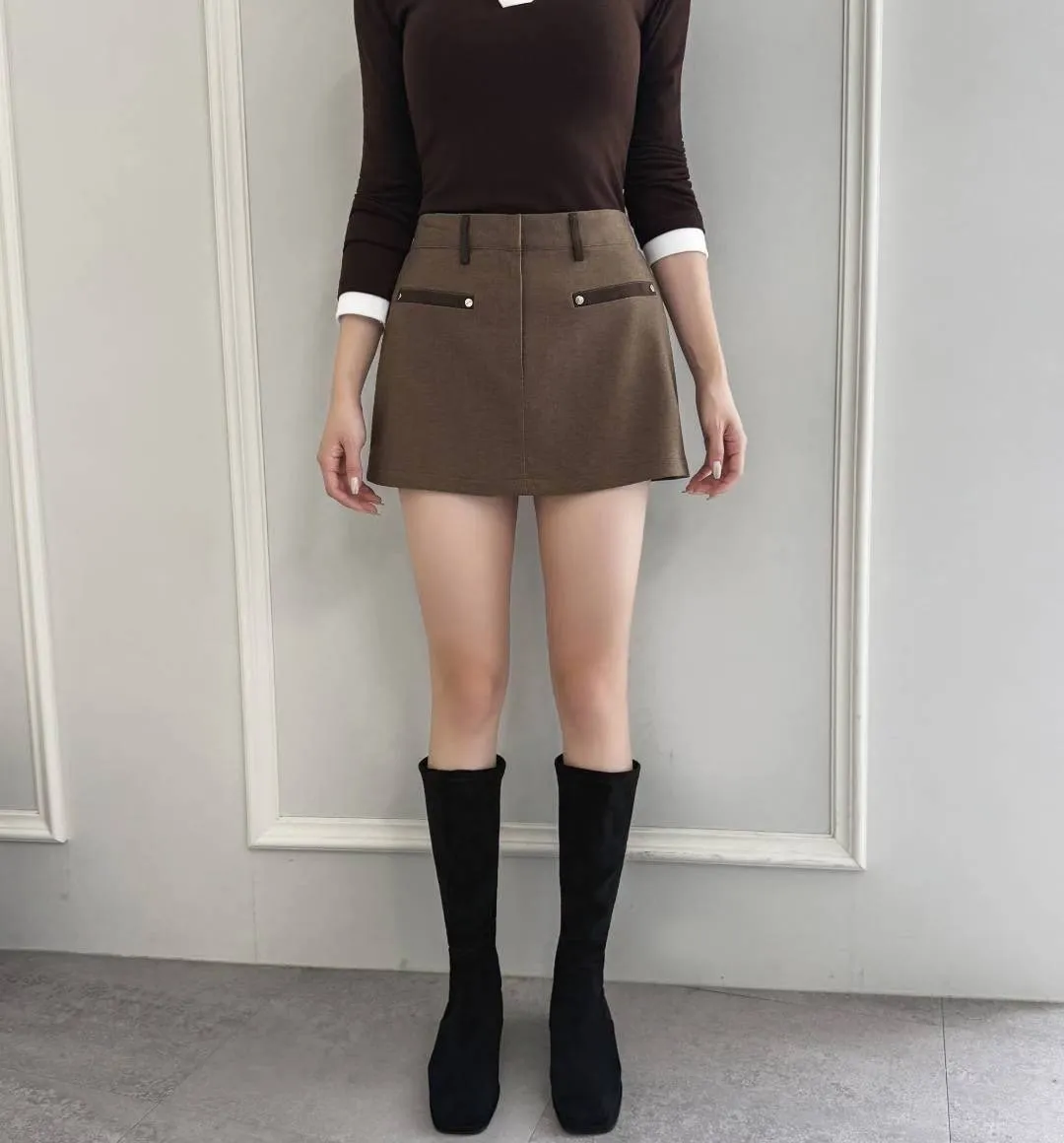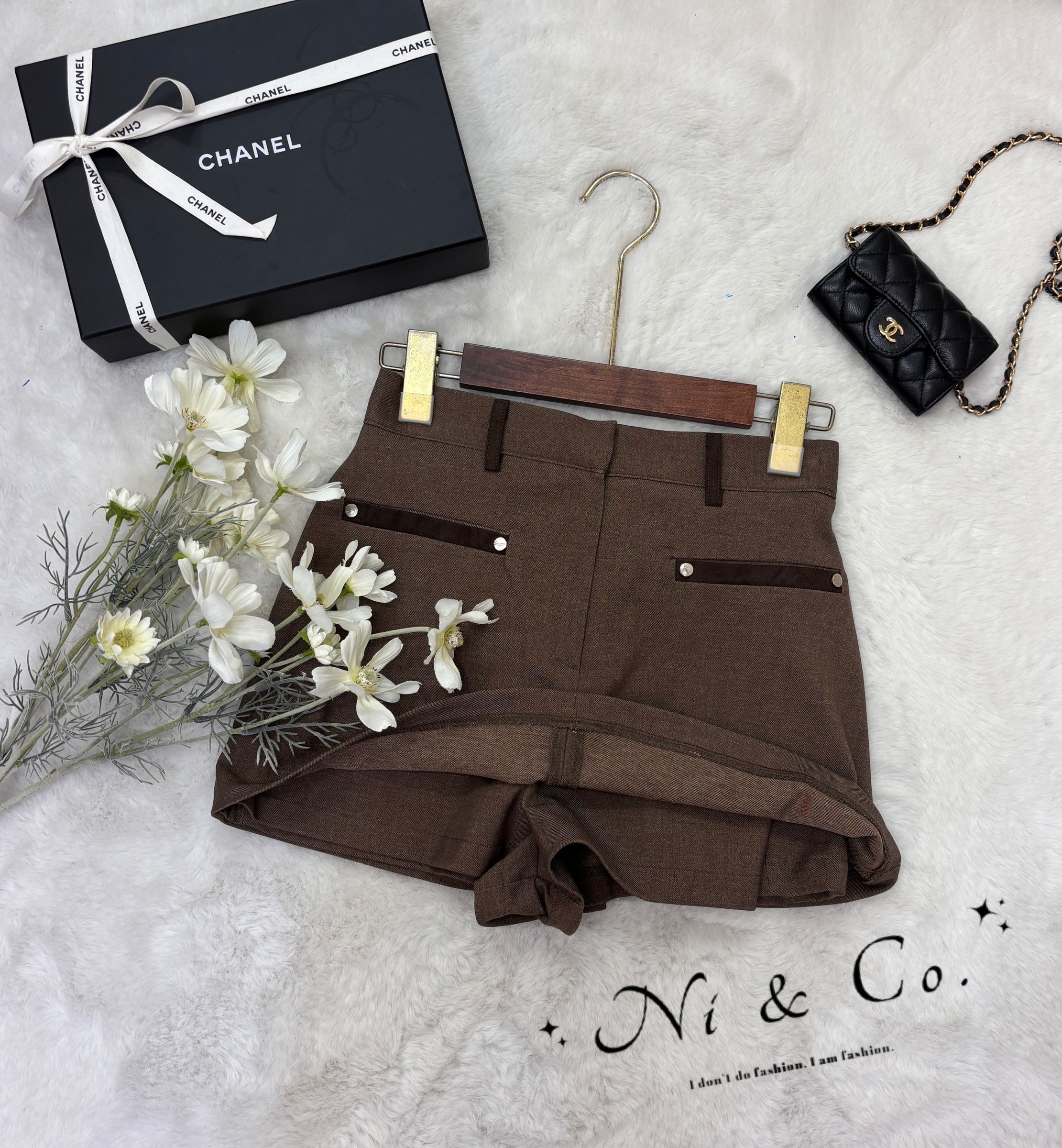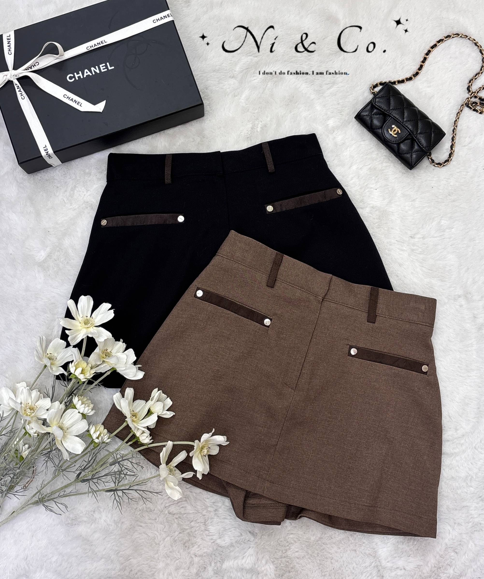 #5034 [𝐤𝐨𝐫𝐞𝐚🇰🇷]☺︎︎伯爵榛調/麂皮拼接裙褲
