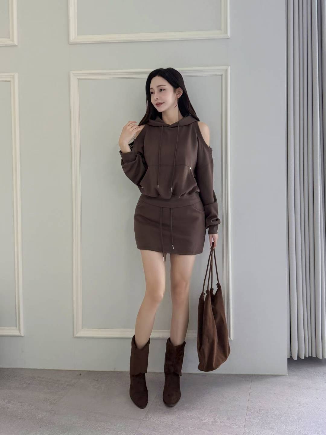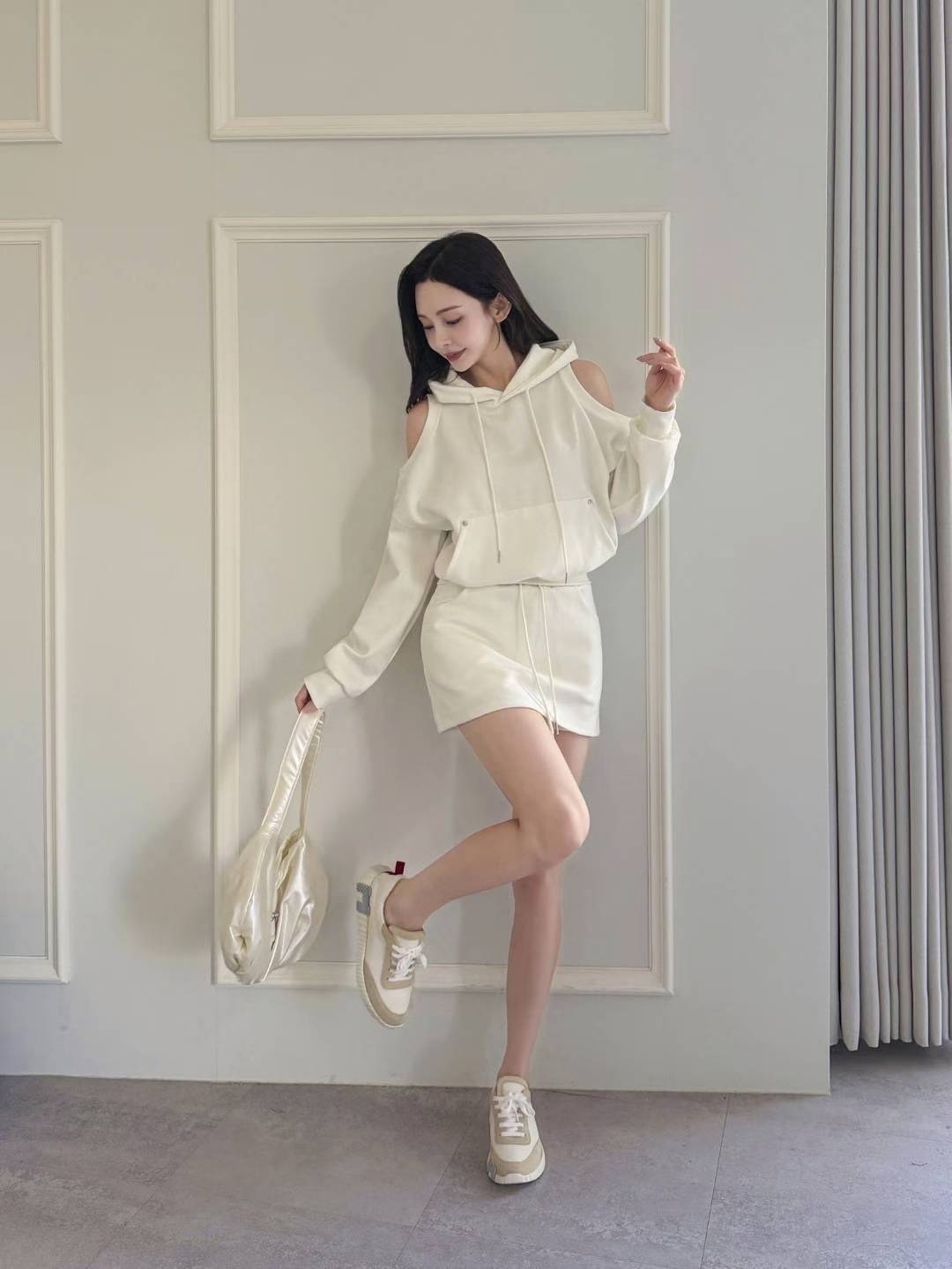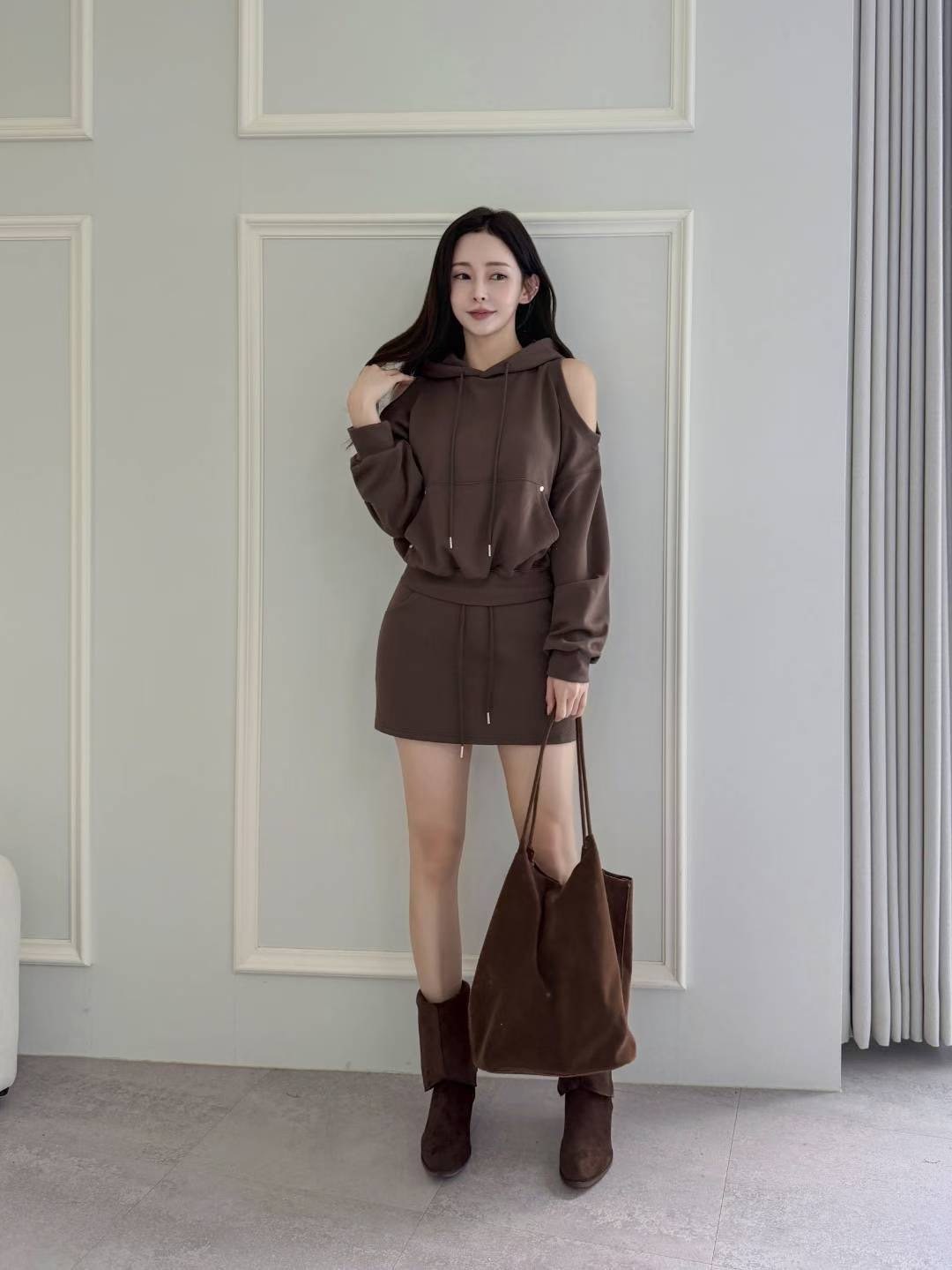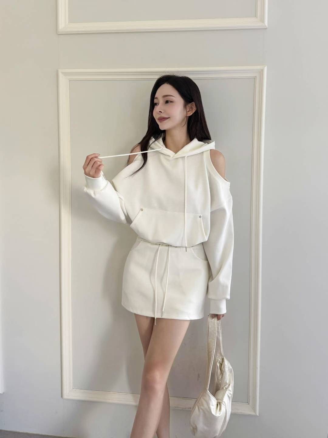 #7593[𝐤𝐨𝐫𝐞𝐚🇰🇷]☺︎︎霜落肩語/Cut-out Hoodie Mini Set