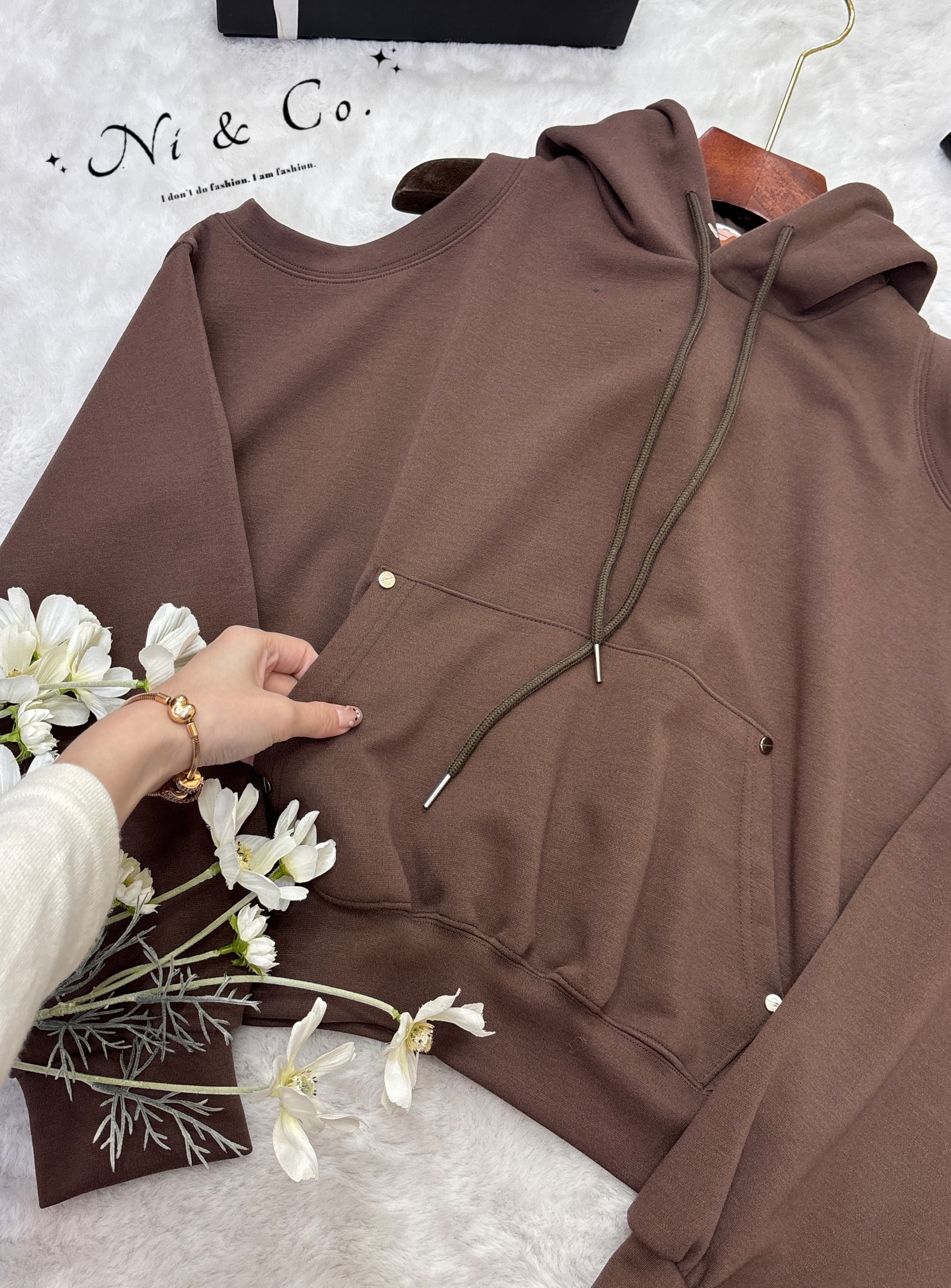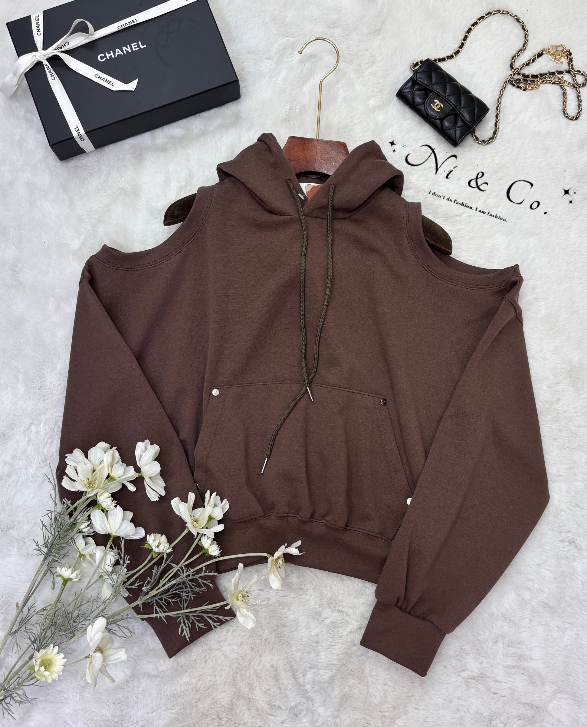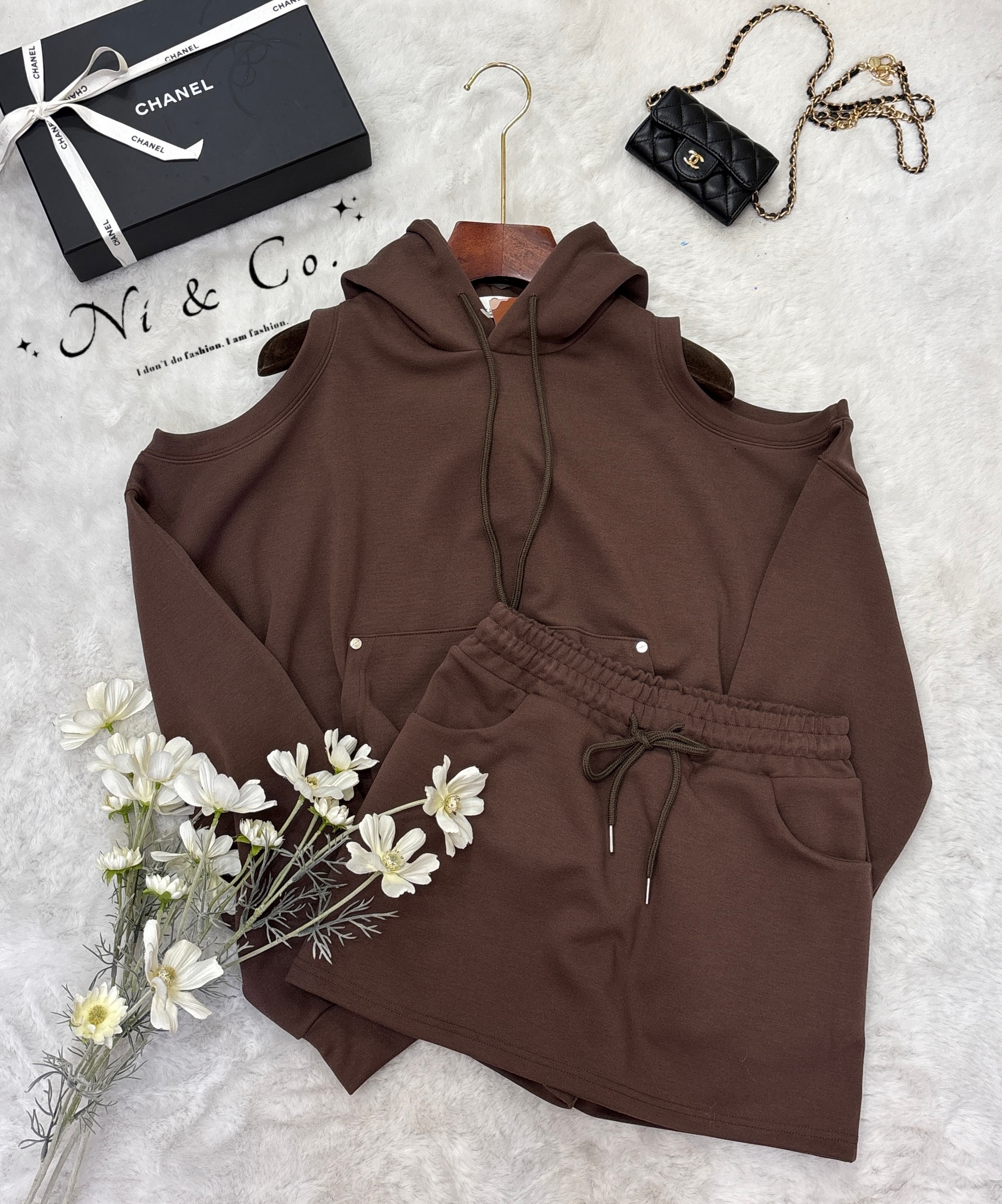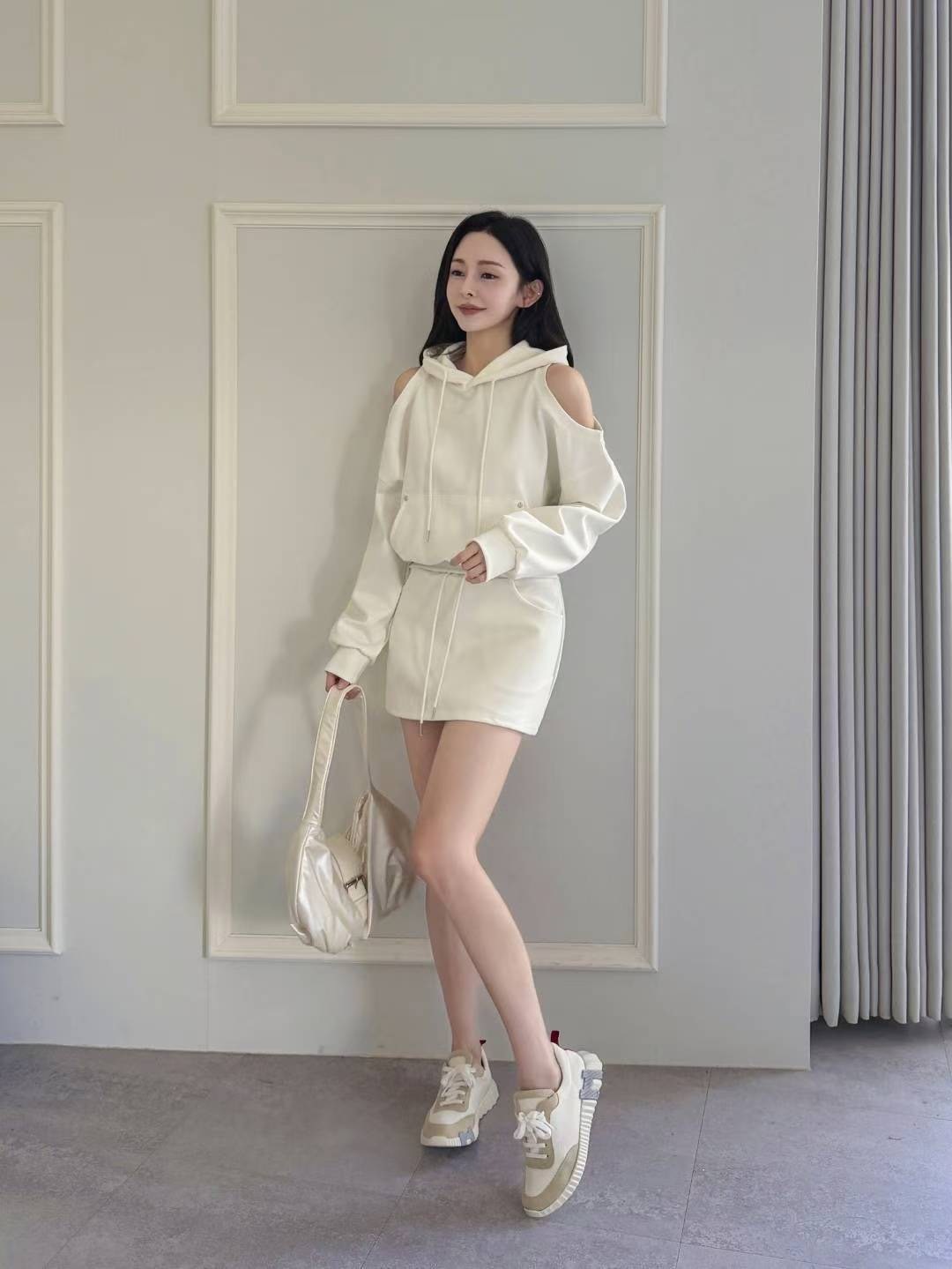 #7593[𝐤𝐨𝐫𝐞𝐚🇰🇷]☺︎︎霜落肩語/Cut-out Hoodie Mini Set