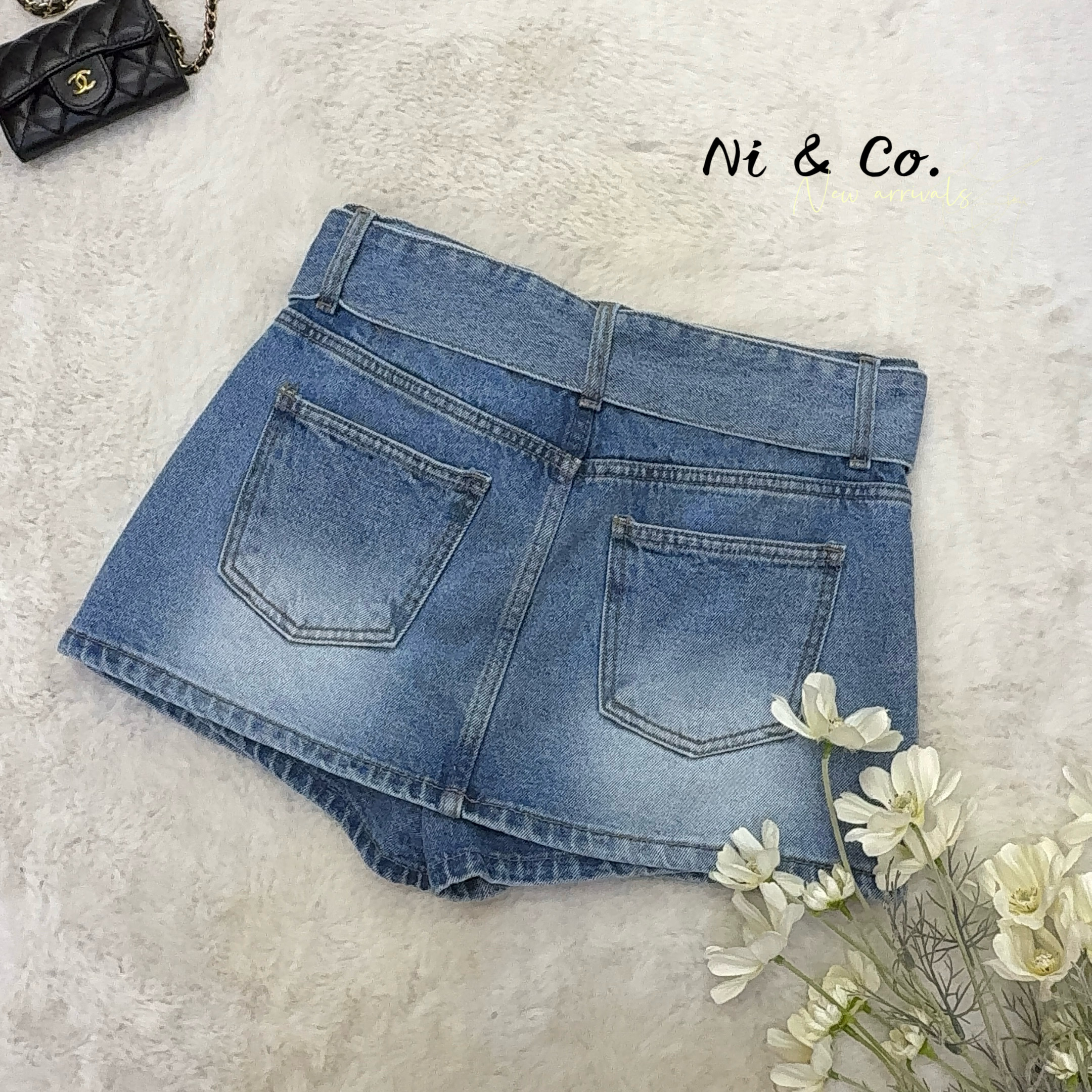 #5085[𝐤𝐨𝐫𝐞𝐚🇰🇷]☺︎︎鎖腰舊影/低腰辣妹牛仔褲裙(S~L)