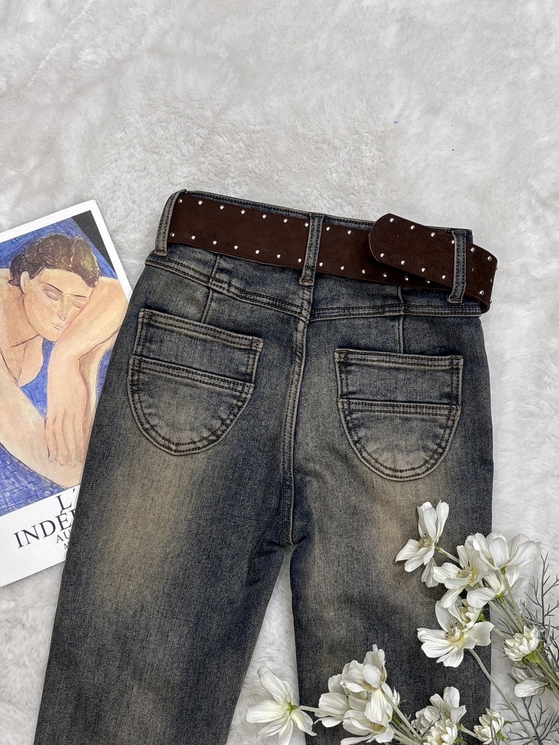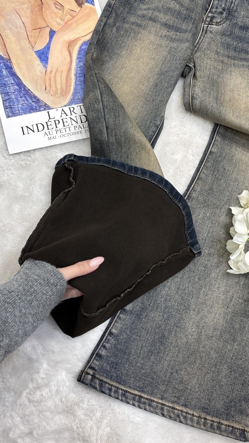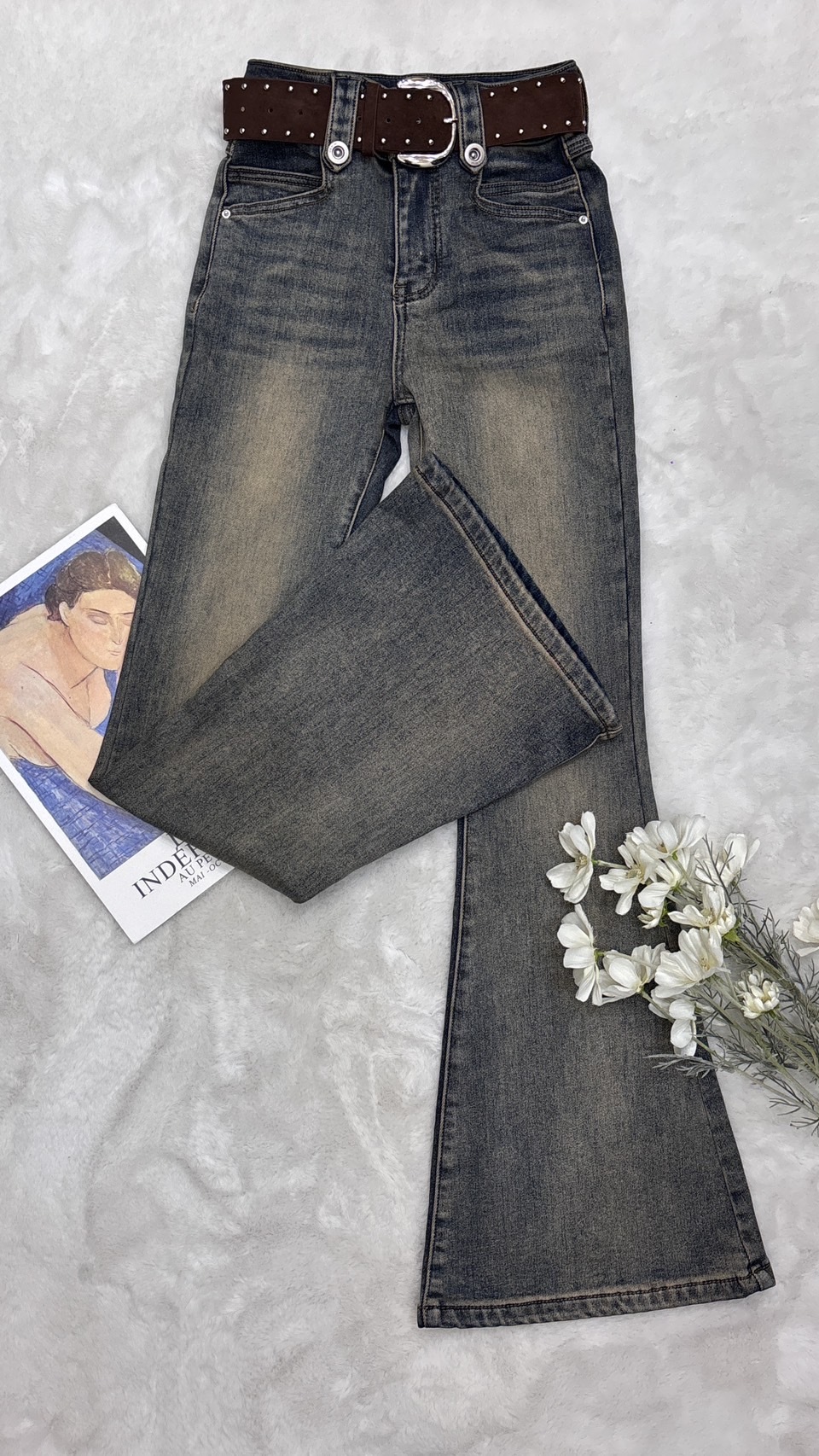 #5076 加絨復古做舊牛仔喇叭褲 (S~L)附皮帶