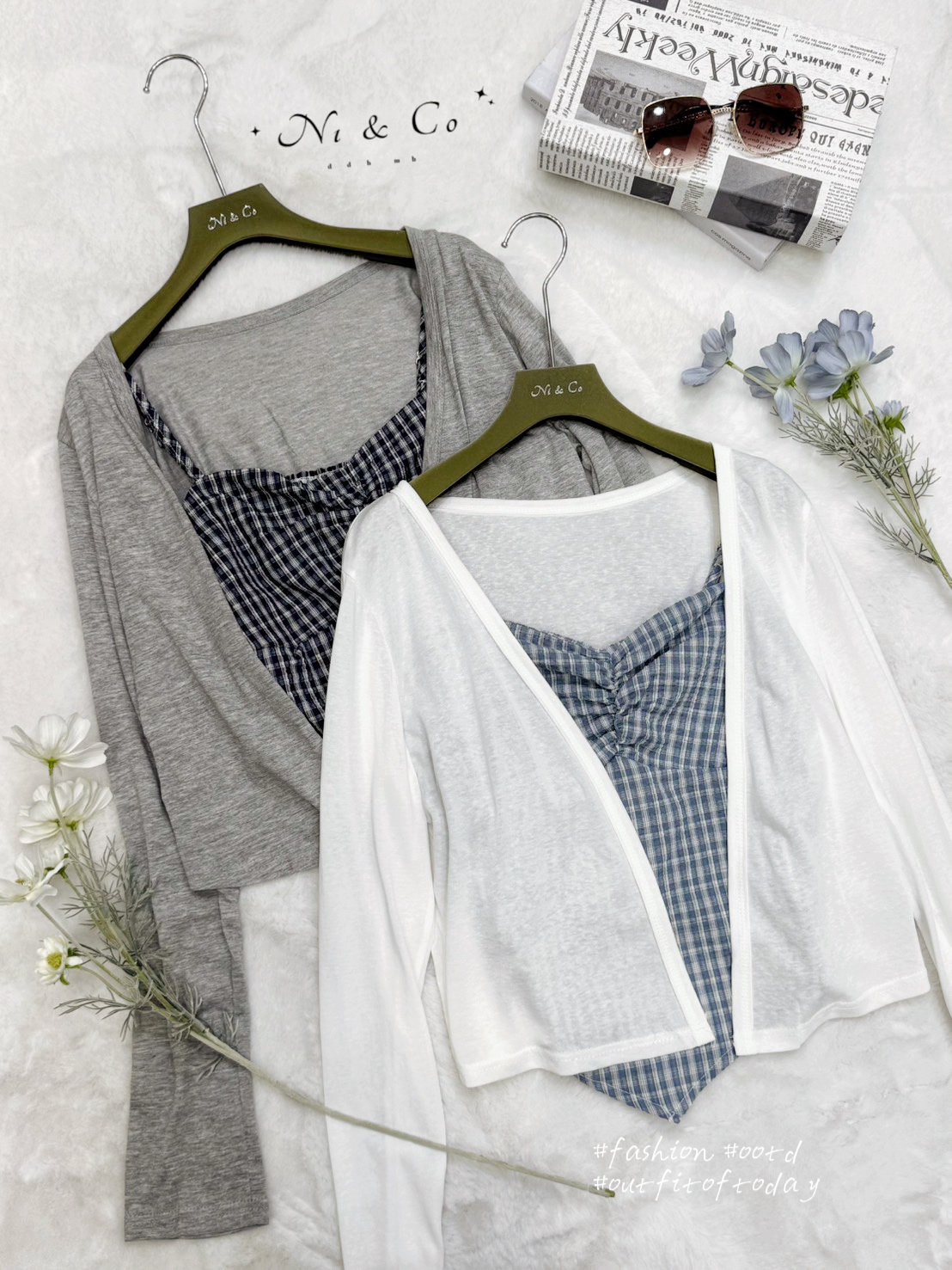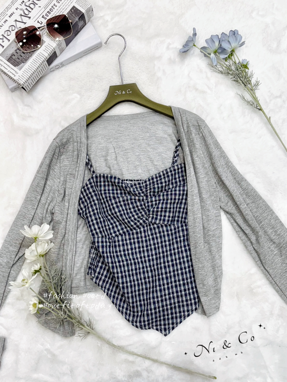 背心:胸圍35/腰圍33/全長33(不含肩帶) 罩衫:肩寬27/胸圍32/腰圍39/全長45